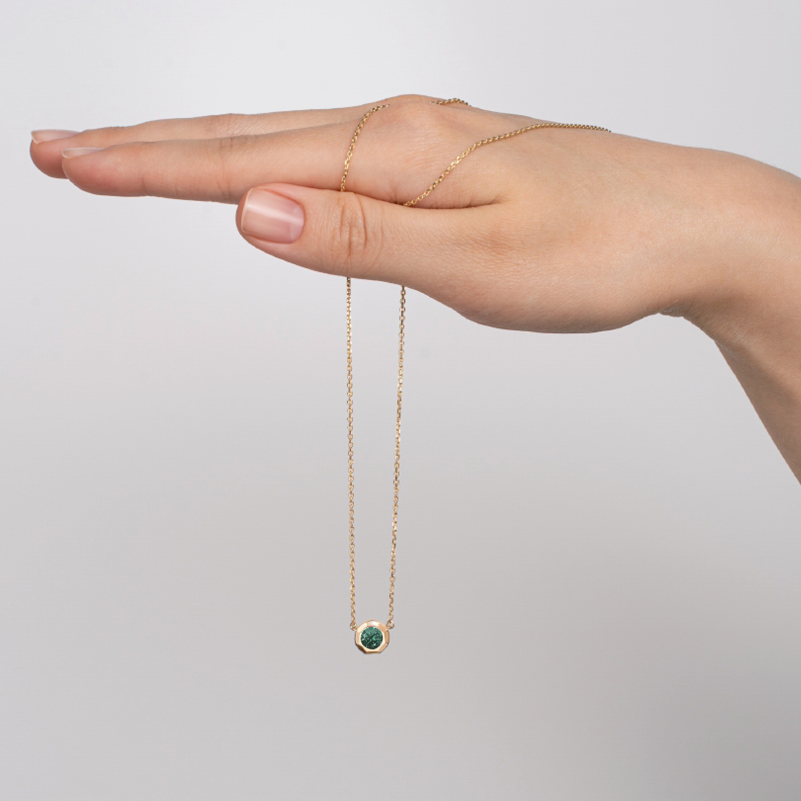 Коллекция, особенная во всех смыслах: 12 месяцев — 12 драгоценных камней, каждый из которых обладает своим символизмом и силой. Колье из золота 585 пробы с зелено-лесным и ярким изумрудом в огранке «круг» — ваш талисман интеллекта и удачи.