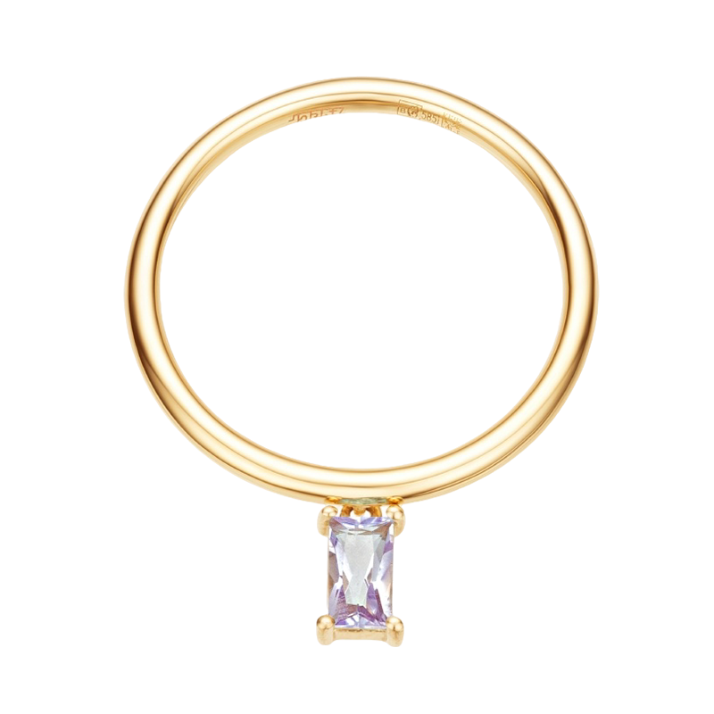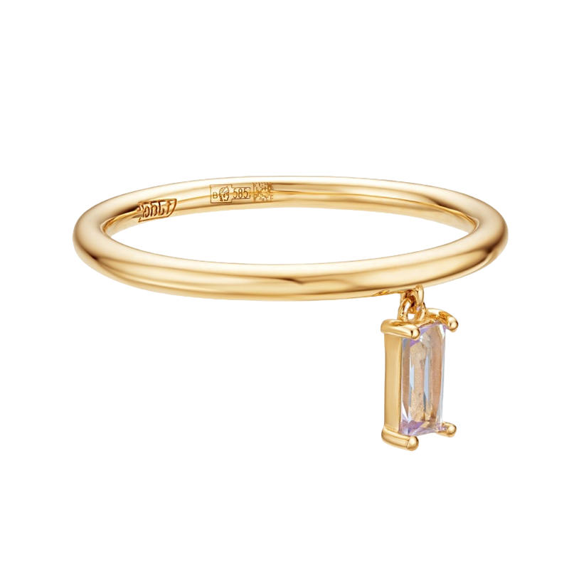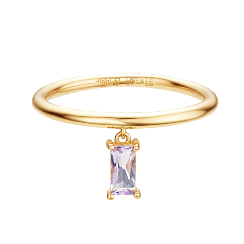 Коллекция «Amulet» — это минимализм и универсальность. Лёгкая, плавная форма золотого кольца 585 пробы дополнена подвеской с аметистом в огранке «багет». Кольцо, живущее в ритме ваших движений, не останется незамеченным.