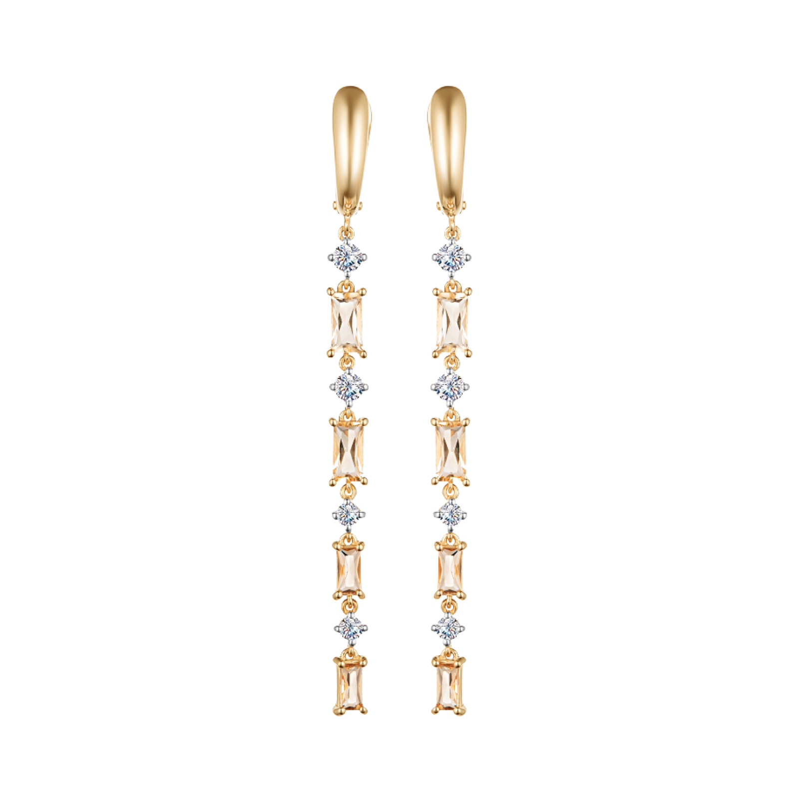 Изящные серьги из желтого золота 585 пробы с цитринами и бесцветными топазами из коллекции LIRICO - это яркий акцент, который делает образ более живым и наполняет пространство вокруг позитивной энергией. Замок конго обеспечивает комфортную посадку серег и надежную фиксацию.
