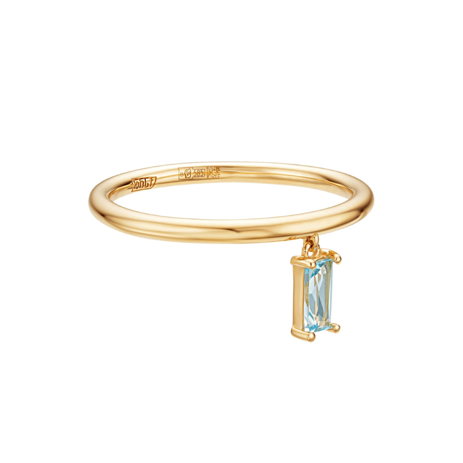 Коллекция «Amulet» — это минимализм и универсальность. Лёгкая, плавная форма золотого кольца 585 пробы дополнена подвеской с свисс топазом в огранке «багет». Кольцо, живущее в ритме ваших движений, не останется незамеченным.