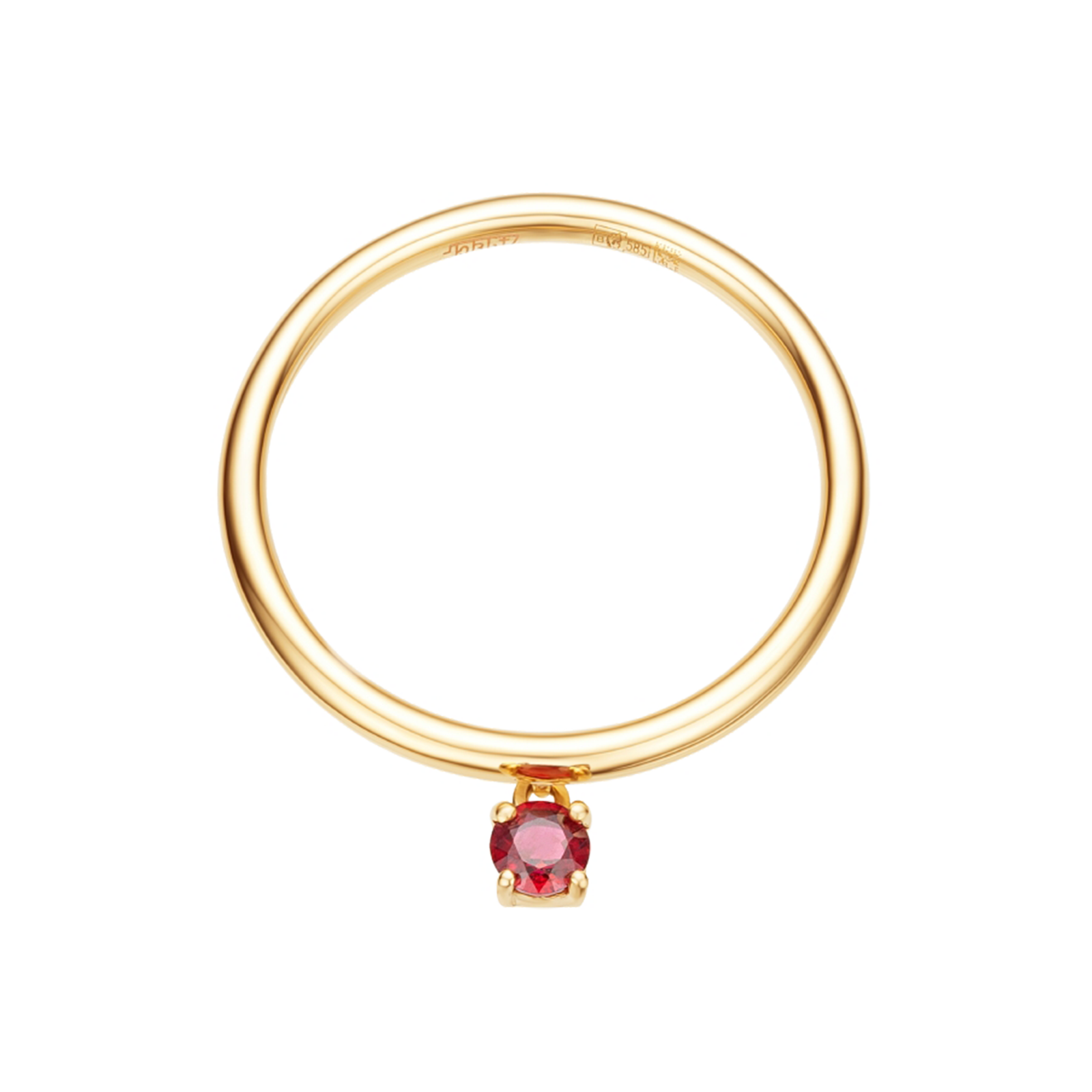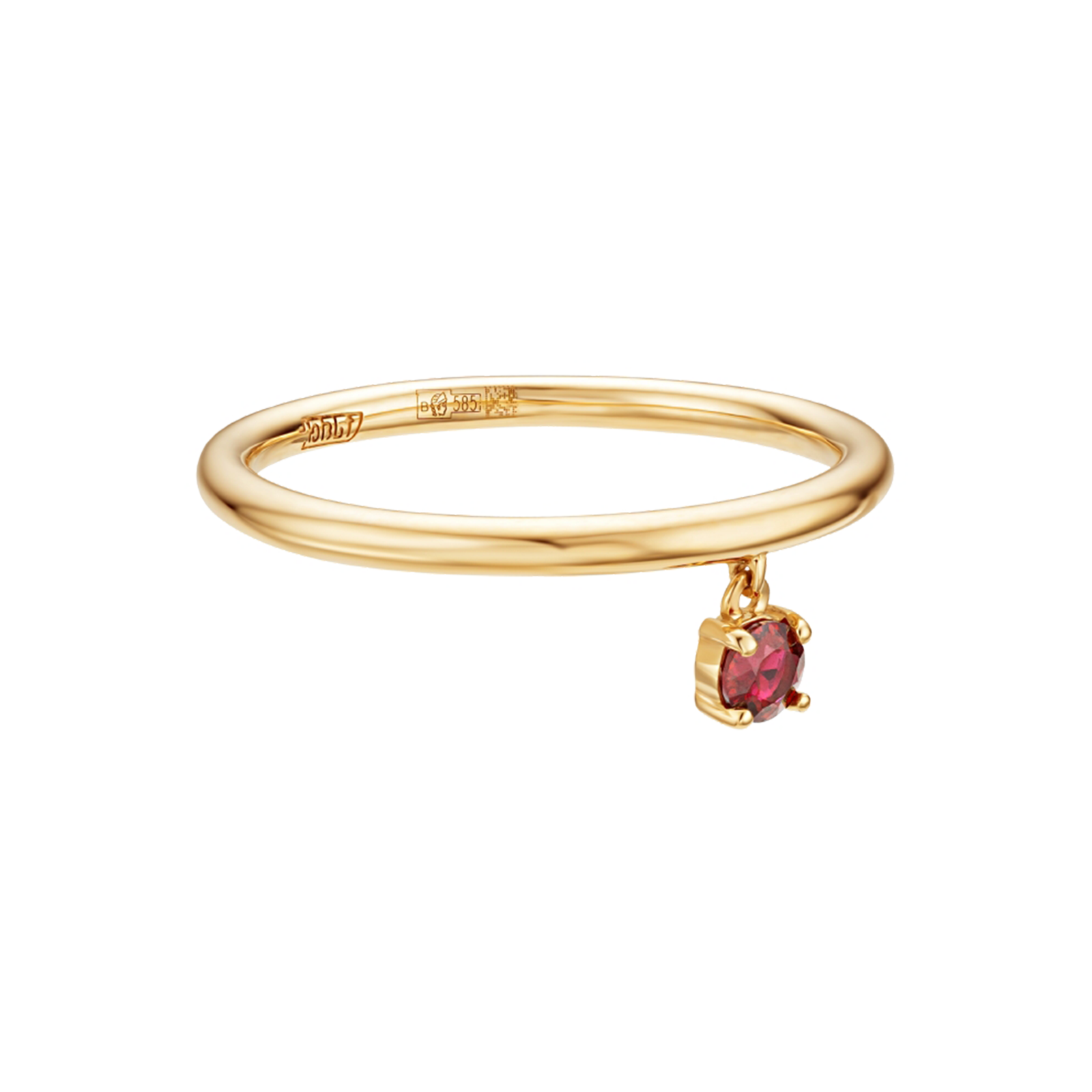 Коллекция «Amulet» — это минимализм и универсальность. Лёгкая, плавная форма золотого кольца 585 пробы дополнена подвеской с гранатом в огранке «круг». Кольцо, живущее в ритме ваших движений, не останется незамеченным.