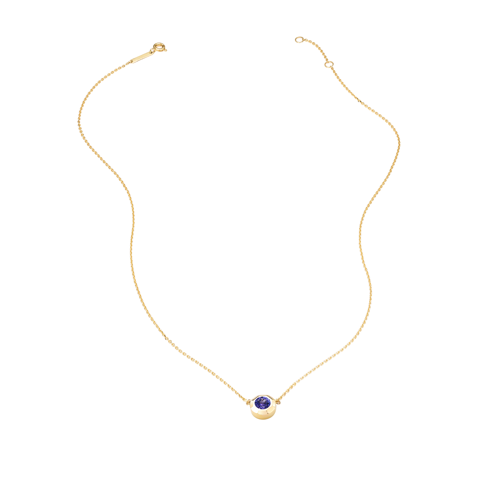 Коллекция, особенная во всех смыслах: 12 месяцев — 12 драгоценных камней, каждый из которых обладает своим символизмом и силой. Колье из золота 585 пробы с магическим танзанитом цвета индиго в огранке «круг» — ваш талисман духовности и богатства.