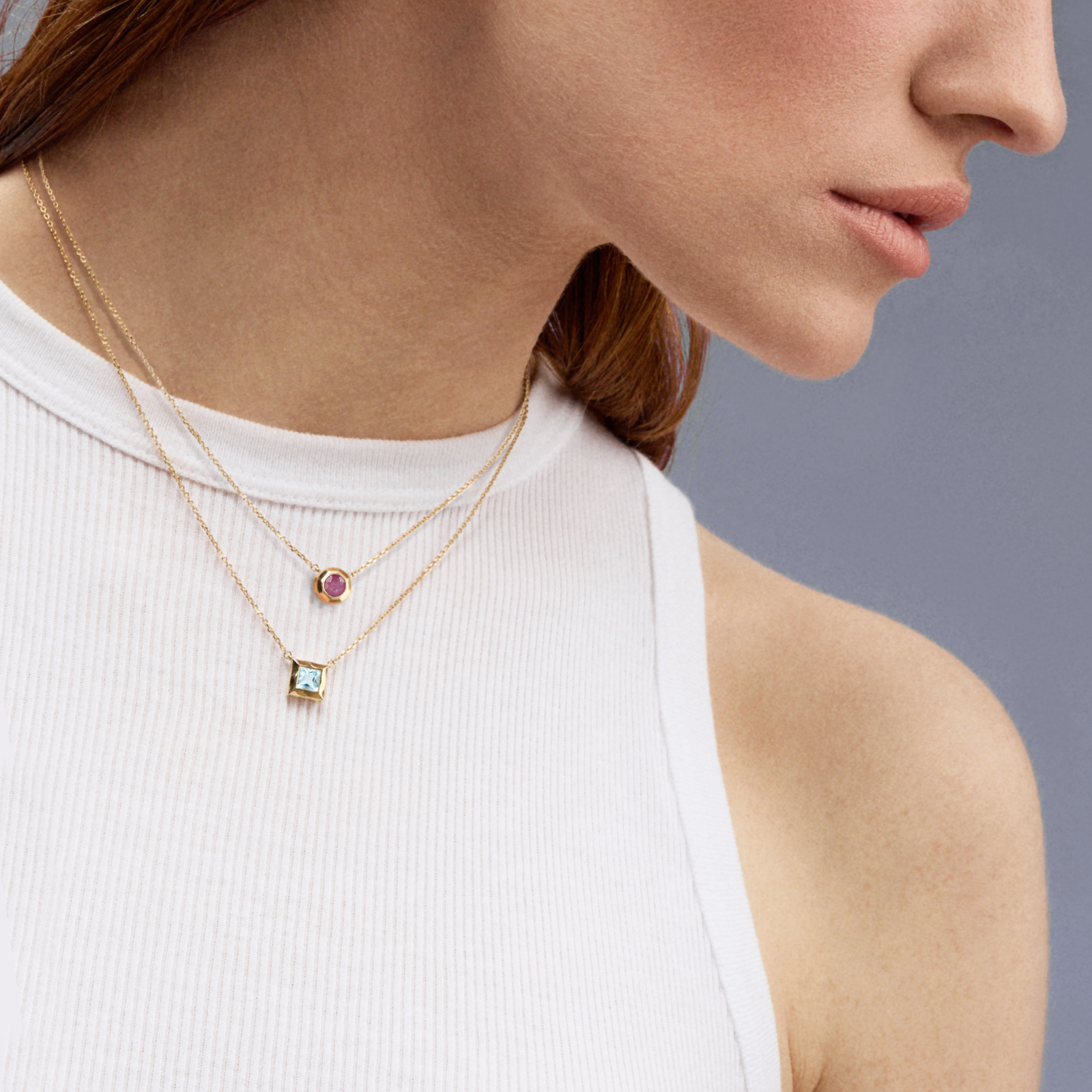 Коллекция, особенная во всех смыслах: 12 месяцев — 12 драгоценных камней, каждый из которых обладает своим символизмом и силой. Колье из золота 585 пробы со светло-небесным свисс топазом в огранке «квадрат» — ваш талисман мудрости и любви.