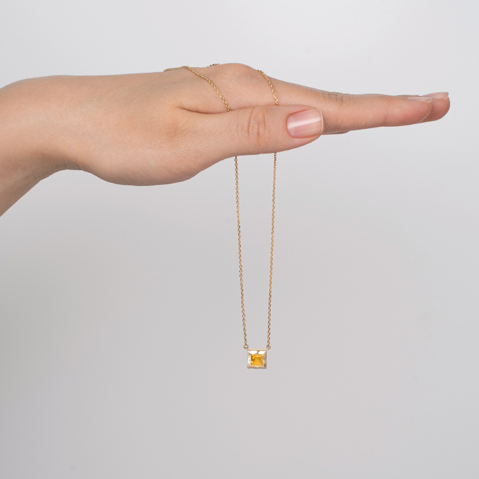 Коллекция, особенная во всех смыслах: 12 месяцев — 12 драгоценных камней, каждый из которых обладает своим символизмом и силой. Колье из золота 585 пробы с золотисто-солнечным цитрином в огранке «квадрат» — ваш талисман процветания и спокойствия.