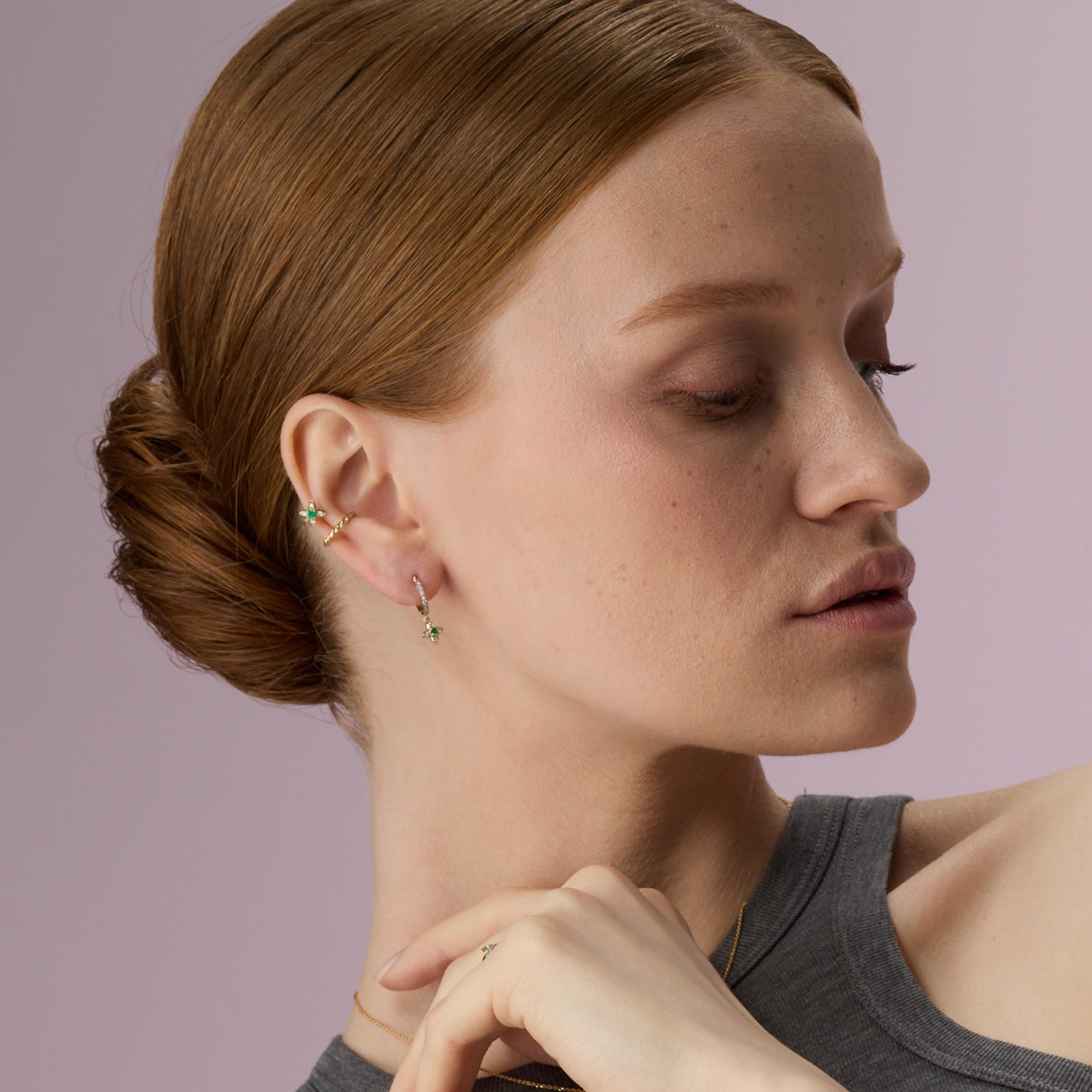 Та самая незаменимая деталь гардероба, которая легко вписывается в любой образ. Золотой кафф-четырехлистник с бриллиантами, подчеркивающими глубину изумрудного оттенка, станет изысканным дополнением любой истории. Любимый аксессуар, который можно носить весь день, не снимая.